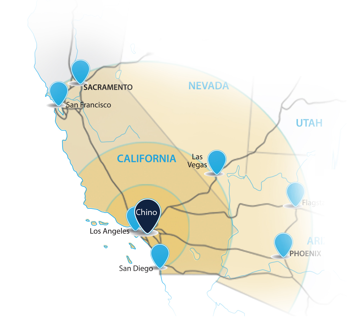 Chino's location gives you premier access to major routes of commerce and the global market. Located near the western border of the Inland Empire, you can quickly reach a number of major highways. The city is closer to both the Port of Los Angeles and the Port of Long Beach than Ontario. By strategically positioning your headquarters at Watson Industrial Park Chino, you can get your goods from your distribution center to the market with ease and efficiency.